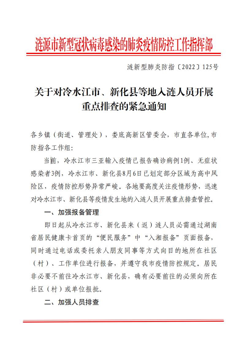 关于对冷水江市、新化县等地入涟人员开展 重点排查的紧急通知-白菜社区