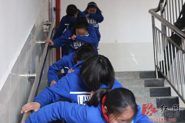 5月11日,蓝溪学校开展了消防安全逃生演练,整个演练过程井然有序,效果圆满。通过此次演练,进一步增强了师生消防安全意识,有效提高了广大师生在火灾突发事故面前的自救能力。图为学生用手绢等物品捂住口鼻,弯腰俯身有序从教学楼向操场开阔地带撤离疏散。(周小艳 摄影报道)