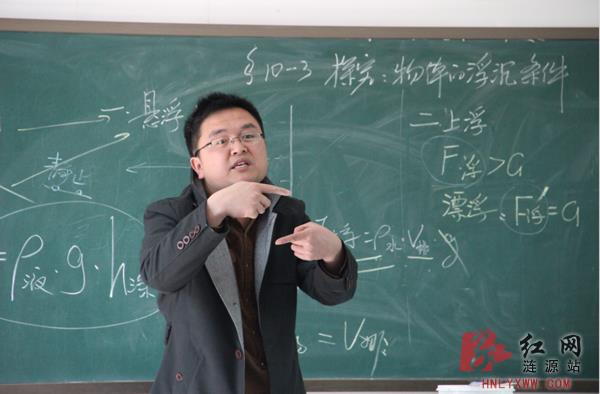 4月15日,长郡蓝田中学教学副校长李志华在该校1304班执教了《物体的浮沉条件》研讨课,受到师生广泛好评。整节课始终坚持把学习方法渗透到教学的各个环节之中,层层引领,反复训练,精巧点拨,让学生主动探究,有效合作,精彩展示。图为李志华正在授课。(阳 彪 摄)