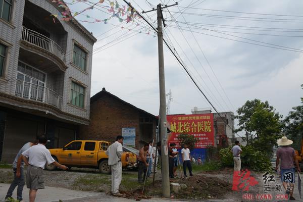 近日,天气晴好,六亩塘镇蓝芙公路升级改造工作如火如荼开展,洞庭——树亭路段公路两边清表、杆线搬迁,涵管安装也有条不紊地在进行。为确保蓝芙线准时完成改造通车,六亩塘镇蓝芙公路指挥部充分发挥“5 2”、“白 黑”工作模式,强力推进项目建设进度。图为杆线搬迁现场。(潘海燕 摄影报道)
