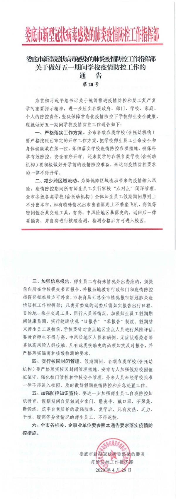 关于做好五一期间学校疫情防控工作的通告(20号)-白菜社区