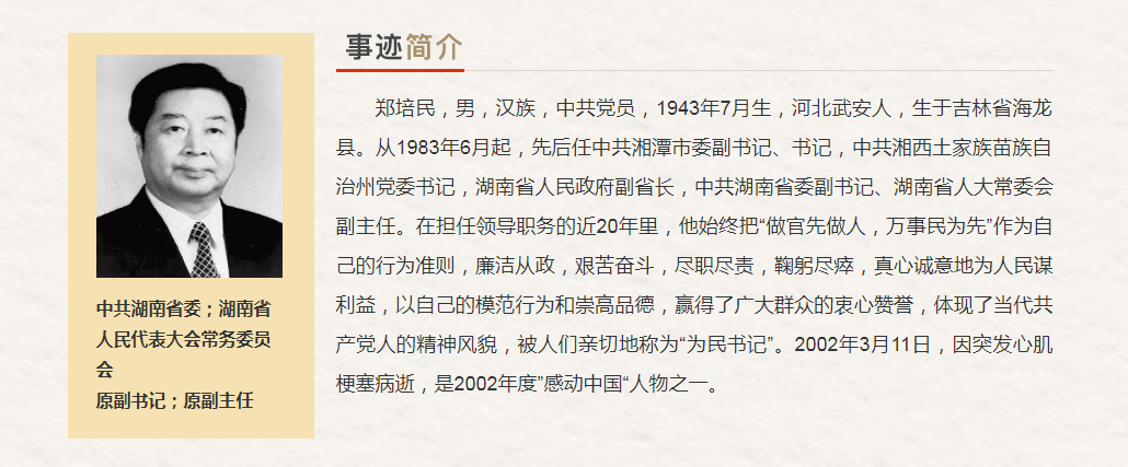 湖南省共有20名候选人,分别是:王新法、文花枝、方红霄、田汉、刘友梅、许月华、余元君、沈从文、张超、陈能宽、欧阳海、罗健夫、周光召、郑培民、袁隆平、黄伯云、梁稳根、彭楚政、雷锋、熊倪。让我们来了解一下他们的先进事迹。