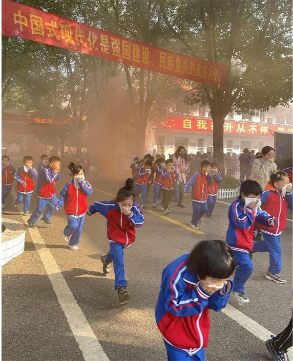 “叮叮叮……”上午9时30分左右,一阵急促的警报声在校园内响起,值班人员立即拨打“119”火警电话,学校迅速启动紧急疏散预案,并通过广播发布紧急疏散命令:“全体师生请注意,全体师生请注意,现在开始进行学校消防疏散演练,请各班老师带领学生迅速疏散撤离……”。听到疏散广播后,各班老师在工作人员的指挥下,有秩序的组织学生拿好毛巾、捂住口鼻、低头弯腰、沿着紧急疏散路线井然有序的地撤离到安全区域。