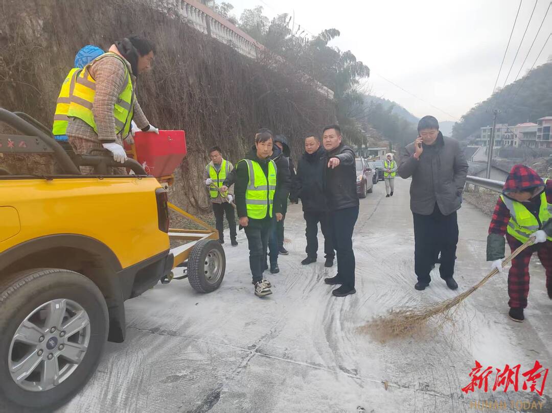 各乡镇(街道)因地制宜开展防御工作:三甲乡党委书记肖安乐带头冲锋,率领乡镇干部开展除冰铲雪撒盐行动;桥头河镇应急、城管工作人员冒雪连夜作业,为桥梁路面撒盐融冰;渡头塘镇、荷塘镇加密路面巡查频次,实时监测天气变化和道路状况;全市上下形成“横向到边、纵向到底”的防控网络,让党旗在冰雪防御一线高高飘扬,让群众在严寒中感受到党和政府的温暖关怀。