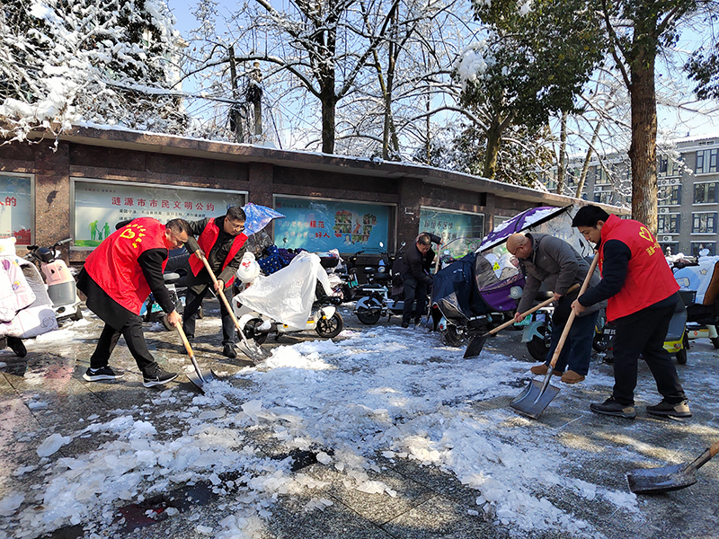 在清雪现场,各单位干部职工有的用铁锹铲去地面冰层,有的用扫帚清扫路面积雪,有的抛洒工业盐溶解冰雪,通过大家的齐心协力和相互配合,联点社区主要路段、门店门前人行道、主次干道、背街小巷的积雪纷纷被清扫干净,为过往群众清扫出一条条“便民路”,极大地方便了车辆和行人通行,充分展现了广大党员干部从严从实、团结协作的精神风貌。同时,志愿者们还劝导临街的门店搞好“门前三包”,及时清扫门前积雪,确保行人出行安全。