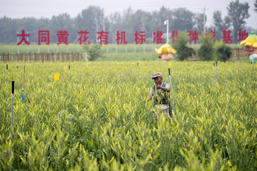 那次考察期间,习近平总书记来到大同市云州区有机黄花标准化种植基地。